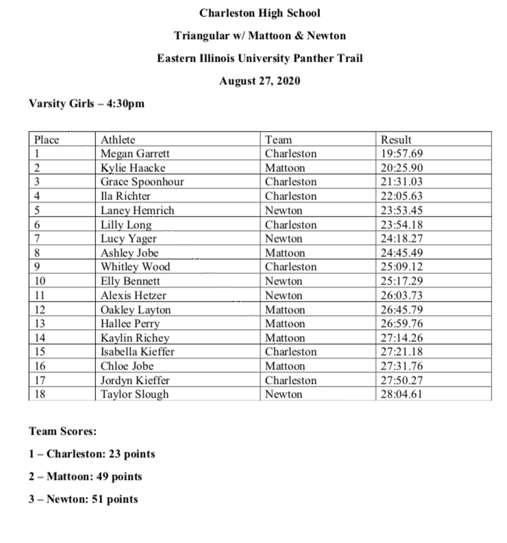 Charleston High School - Charleston, IL -- EIU Panther Trail 5k